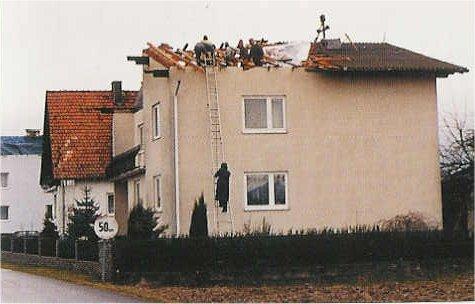 Sturmkatastrophe am 26. und 27 . Februar 1990. Wir rückten zum freimachen der Straßen aus, umgefallene Bäume waren zu beseitigen. Der Bachmayr Stadl wurde vom Wind umgerissen und das Dach beim Hieslmair abgedeckt.