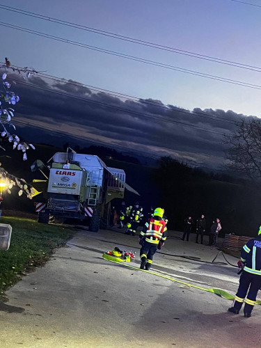 Beim Eintreffen an der Einsatzstelle führte der Einsatzleiter eine Erkundung durch. Dabei stellte sich heraus, dass es im Bereich der Bremse eines Mähdreschers zu einer starken Rauchentwicklung gekommen ist. Glücklicherweise konnte kein offenes Feuer festgestellt werden.