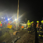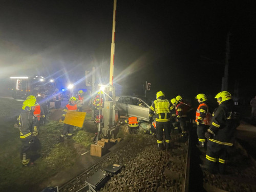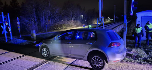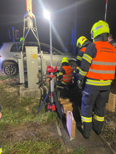 Ein Fahrzeug war im Bereich eines Bahnübergangs von der befestigten Straße abgekommen und in einen Graben gerutscht. Nach einer ersten Erkundung des Einsatzleiters konnten keine austretenden Betriebsmittel festgestellt werden. Zudem bestand keine Gefahr für Personen, da der Bahnverkehr bereits durch die Polizeiinspektion Neuhofen gestoppt worden war.