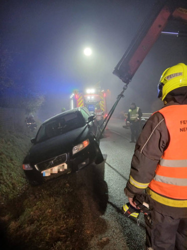 Ein Fahrzeug war von der Straße abgekommen und im Straßengraben zum Stillstand gekommen. Nach der ersten Lageerkundung durch den Einsatzleiter der FF Piberbach konnte rasch Entwarnung gegeben werden: Es waren keine Personen eingeklemmt oder in Gefahr.