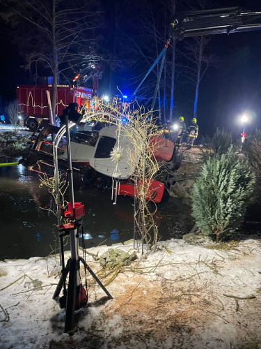 In der Faxalarmierung wurde als Alarmtext „Traktor in Teich gestürzt“ angegeben, wodurch die Dringlichkeit des Einsatzes sofort ersichtlich war.