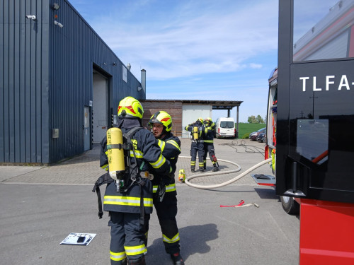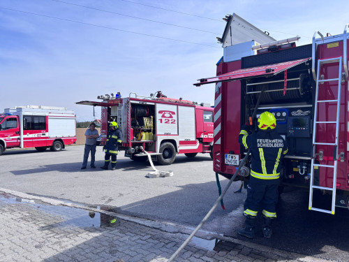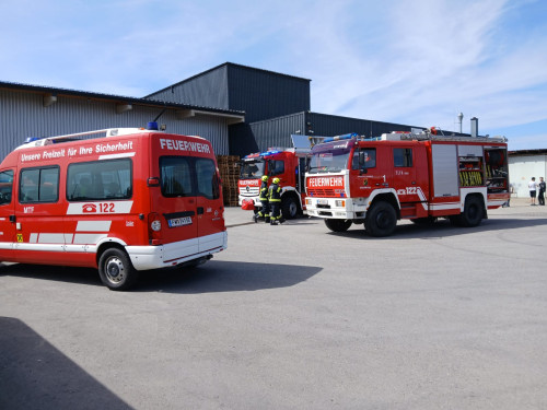 Die Kameraden der Feuerwehr Schiedlberg wurden um 14:16 Uhr zu einer automatisch ausgelösten Brandmeldeanlage gerufen. Bereits während der Anfahrt stellte sich heraus, dass es sich tatsächlich um einen Brand auf einem Industriegelände handelte.