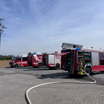 Unverzüglich wurde das TLF 4000 mit Atemschutzträgern besetzt. Zusätzlich rückte das LF-A/B aus, um bei Bedarf eine Zubringerleitung zu den Tanklöschfahrzeugen aufzubauen. Unser KDO-Fahrzeug fuhr mit weiteren Kräften zur Unterstützung ebenfalls zum Einsatzort aus.